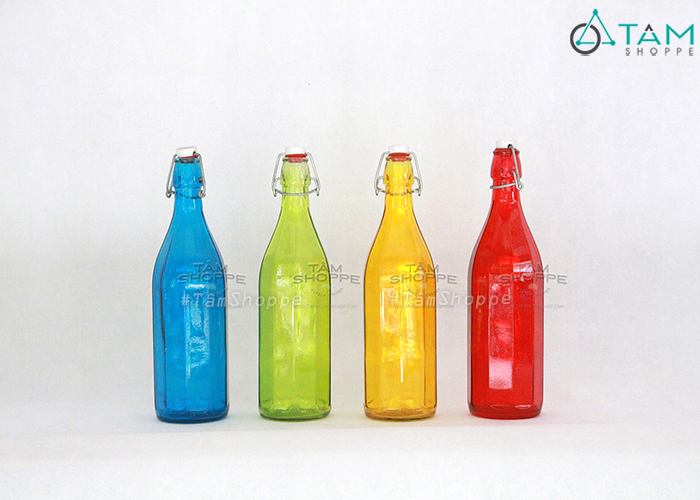 - Chất liệu: thủy tinh màu cao cấp, Đảm bảo vệ sinh an toàn thực phẩm khi sử dụng chứa đựng đồ uống, dung dịch lỏng.