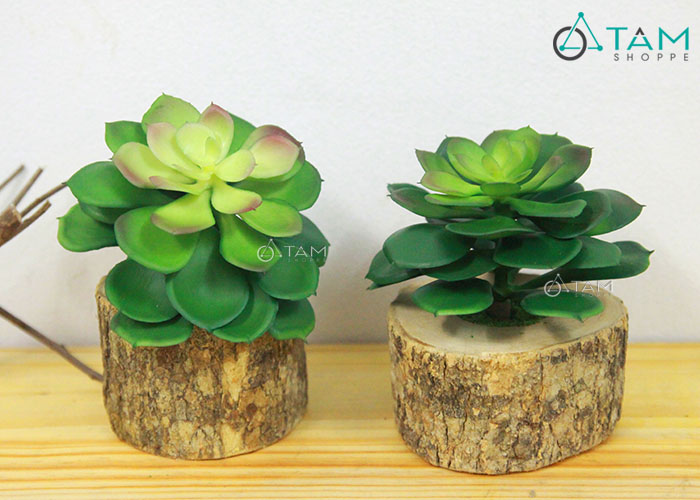 Chậu xương rồng sen đá giả nhỏ xinh để bàn làm việc tạo không gian xanh thư giãn...