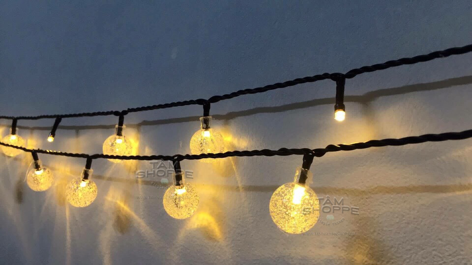 Dây đèn Led trái bi bọt nước vàng ấm Thái Lan bi nhỏ trang trí đẹp mắt, chất lượng tốt ánh sáng rực rỡ...