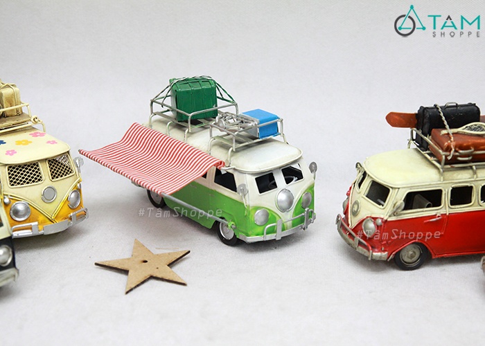 Mô hình xe bus cổ điển bằng sắt Volkswagen dài 16cm nhiều kiểu phong cách cổ điển Vintage. Với các chi tiết bằng sắt gia công tỉ mỉ. Kết hợp nhiều chi tiết nhỏ vụn thành một chiếc xe mô phỏng gần giống với chiếc xe thật. Màu sắc xe tông trầm mờ, chà tróc hoặc bôi lem luốc giả cổ độc đáo.