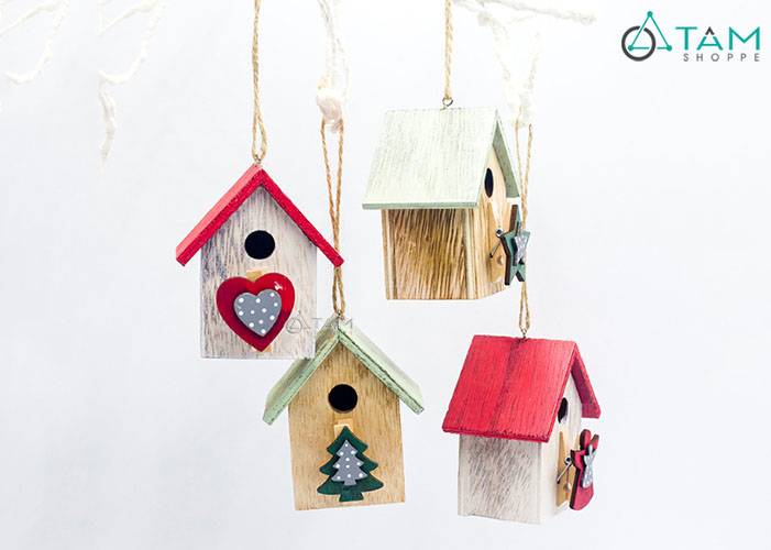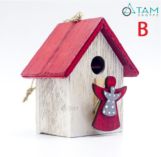 Mô hình nhà chim gỗ mái xanh đỏ có kẹp ảnh hình cây thông, trái tim, ngôi sao nhỏ nhắn. Trên nóc còn có dây treo, thích hợp treo trang trí cùng kẹp ảnh lưu niệm, tấm postcard với những thông điệp ý nghĩa riêng bạn . Mô hình Noel mini nhỏ xinh này thích hợp trang trí tiểu cảnh, treo tường, treo cây thông, làm quà tặng dễ thương đến bạn bè, người thân...
