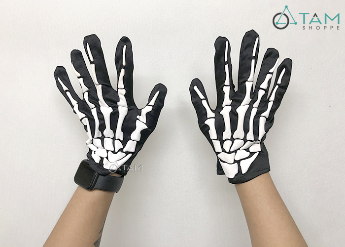 Găng tay vải in hình xương trắng độc đáo, kinh dị. Thích hợp hóa trang Halloween, kết hợp cùng áo choàng bộ xương và mặt nạ ma quỷ đầy thú vị. Hãy tạo ấn tượng phong cách riêng bạn cùng lễ hội ma quỷ này!!!