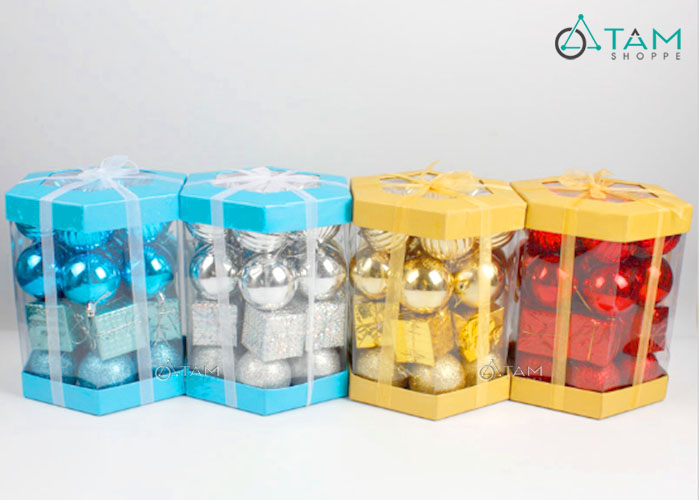 Hộp 28 món phụ kiện trang trí Noel theo chủ đề màu khác nhau. Gồm 7 hộp quà, 7 trái châu kim tuyến, 7 trái châu bóng và 7 trái châu sọc . Bạn có thể tha hồ tô điểm cho cây thông Noel hoặc nhà của mình với những món phụ kiện treo trang trí Noel xinh xắn này nha...