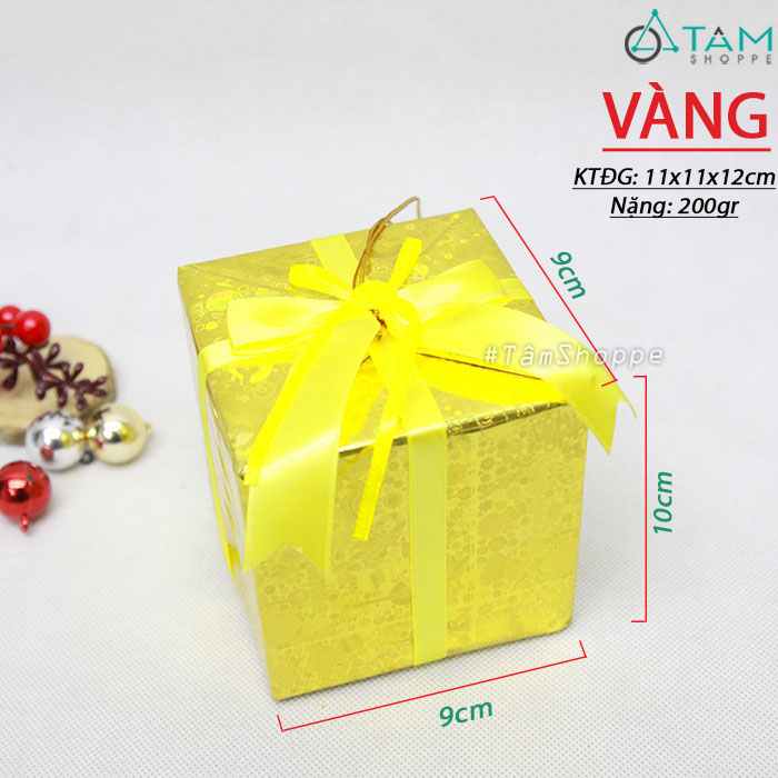 Hộp quà vuông trang trí nhiều màu ĐK9cm đơn giản, dễ thương. Bạn có thể tha hồ tô điểm cho cây thông Noel nhà mình với những món phụ kiện xinh xắn, độc đáo này nha… Chỉ cần bỏ ra một chút thời gian cùng những món đồ sẵn có. Bạn đã có thể tạo ngay một góc chill Giáng sinh cùng những tấm ảnh sống ảo nghìn Like rồi nhé ^^