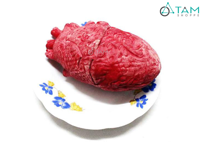 Trái tim người giả trang trí Halloween ấn tượng. Hãy tưởng tượng đặt 1 trái tim đầy máu me trên 1 cái dĩa, kèm theo dao và nĩa trên bàn ăn. Bạn sẽ phải rùng mình kinh hãi đấy!!!