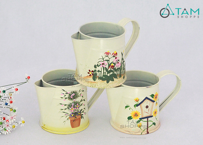 - Ca làm bằng hợp kim thiếc, sơn tĩnh điện màu be, in nhiệt họa tiết Vintage cổ điển